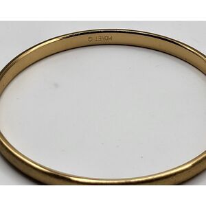 Monet Etched Goldtone Bangle Bracelet 7.5in | Materials: gold metal alloy | Length: 7.5in | Clasp: slide on | Signed? Monet | Excellent vintage condition