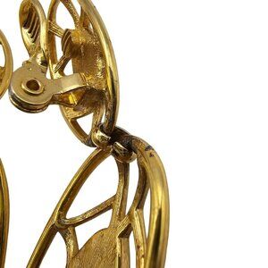 These Monet earrings showcase an elegant design with faux pink opal cabochons. The gold-tone finish adds a touch of sophistication, making them suitable for professional settings or formal occasions. Their clip-on style ensures comfort and ease of wear without pierced ears. Well-crafted for a lasting impression.