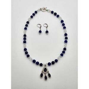 Monet Fiery Sapphire Blue Rhinestone Glass Bead Clear AB Chez Bead Necklace Set in very good pre-owned condition. Please feel free to ask questions.