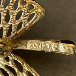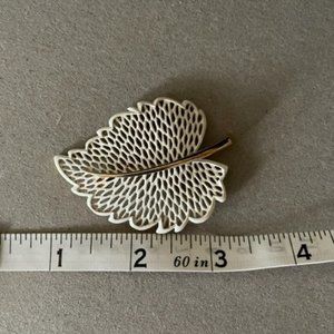 Monet Gilded Gold and White Enamel Fossil Leaf Brooch 70's Runway Book Piece