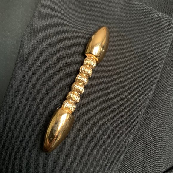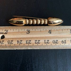 Lovely vintage gold-tone bar pin by Monet. 2-1/2" long. In excellent pre-owned condition showing very little wear. Pin mechanism in perfect working order. Hallmarked on the back. D1263