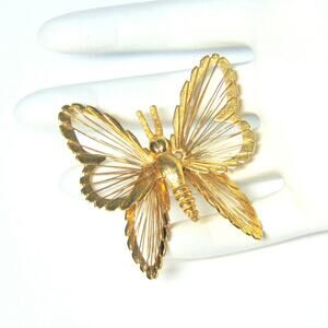 • Beautiful Monet Pin Captures The Elegance Of The Butterfly With Open Wire Metalwork Design This Butterfly Brooch Can Double As A Pendant By Slipping A Gold Chain Through The Brooch Pin Clasp!