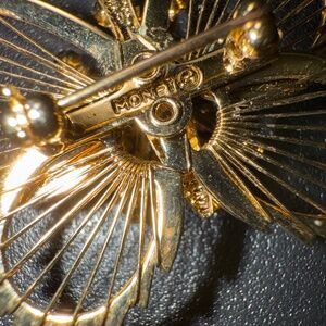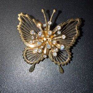 Vintage Monet butterfly rhinestone gold tone brooch. Please see photographs for exact condition. Very nice peace. Measurements shown in pictures