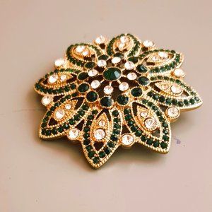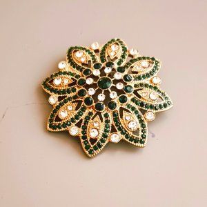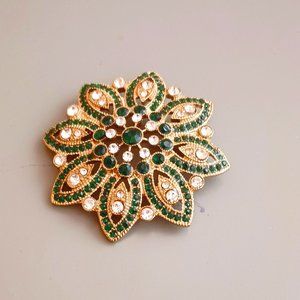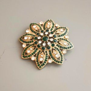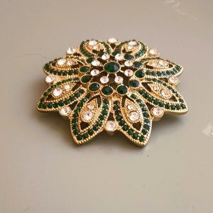 Monet Gold Tone Flower Brooch Pin with Black and Clear Stones Beautiful