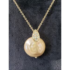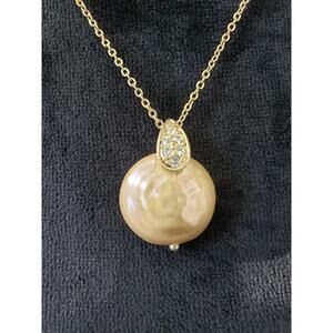Monet Gold Large Pearl Rhinestone Women's Elegantly Paired Necklace & Earrings.