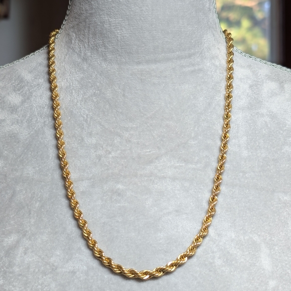 vintage Monet gold-tone rope chain, a classic piece of costume jewelry known for its twisted, rope-like design.