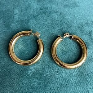 Monet clip-on earrings, gold hoop earrings for unpierced ears, vintage chunky hoops, 2 inch statement earrings, classic gold jewelry, high-polish hoops, retro Monet earrings, timeless fashion jewelry