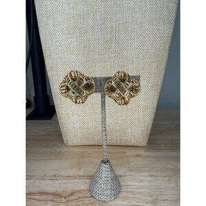 Monet Gold Tone Clip-On Knot Earrings Vintage Style Textured & Polished Finish W