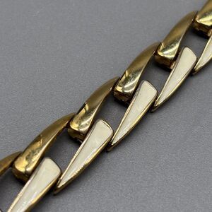 Monet Gold Tone Cream Enamel Link Bracelet Modernist Geometric 7" Vintage MCM