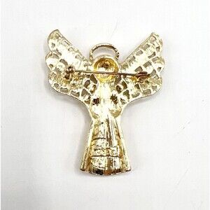 Monet Gold Tone Enameled Angel Brooch Pin Rhinestones Wings Holiday 2.25"