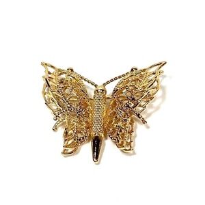 Monet Gold Tone Filigree Butterfly Brooch Pin Book Piece