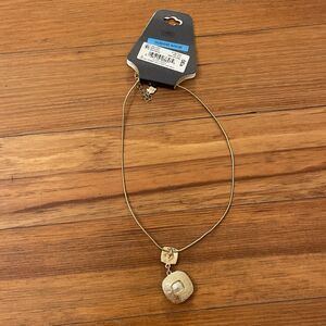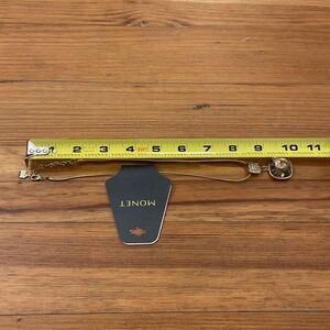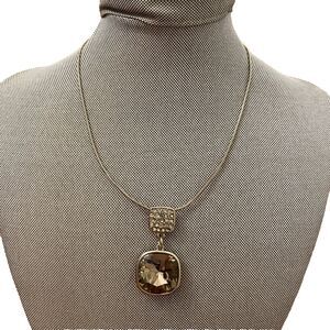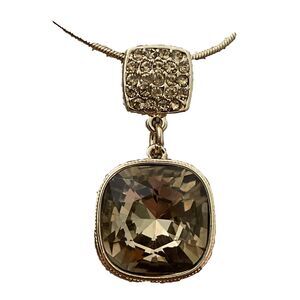 New with tags (NWT), gold tone metal, snake chain necklace with a smokey tan colored square rhinestone and faux diamond encrusted bale by Monet. Chain measurers about 18" end to end which includes an extender. The drop is 8-10 inches depending where you hook the lobster claw closure. In excellent, new condition.