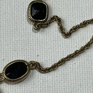 Monet Gold Tone Necklace with Black Fauceted Beads