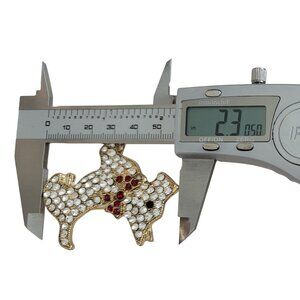 This cute Monet Schnauzer Scottie Dog Brooch is all set to be your companion for your next look. It features an adorable Scottish Terrier dog figural brooch that shows off a lot of sparkle with pave clear rhinestones and a touch of red rhinestones accents on the ribbon bow collar set on a gold-tone base metal. Measures approximately 2.3 inches in width and 1.8 inches in length. Hallmarked Monet on a rectangular cartouche at the back, with a secure pin that is easy to fix on the back and can be firmly attached to your clothing. This pin is in very good condition, it doesn't have missing rhinestones.