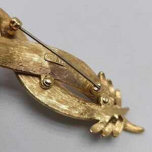 This Monet brooch is an elegant addition to any accessory collection, featuring a timeless leaf design. Crafted with a textured gold-tone finish, it exudes sophistication.