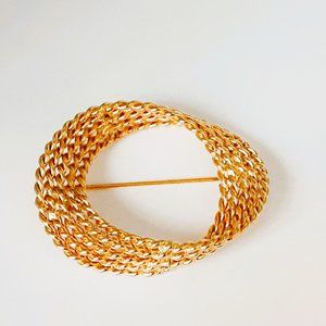 Vintage Monet Gold Tone Twisted Rope Circle Brooch Pin.