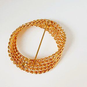 Monet Gold Twisted Rope Brooch Vintage Infinity Circle Pin