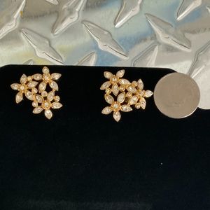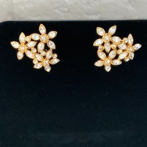 Monet Gold and Rhinestone Elegant Flower Design Earrings Pierced Ears