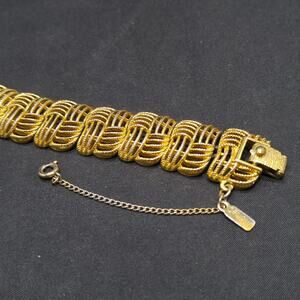Monet Golden Weave Bracelet Gold Plated Filigree 1960s Vintage Jewelry Signed