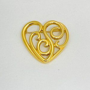 Monet Goldtone Scroll Heart Brooch Excellent Condition - 1-3/8" x 1-3/8"