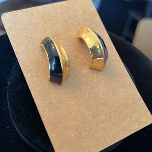 Monet Half Hoop, Concave Pierced Earring - Black and Gold Tone