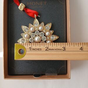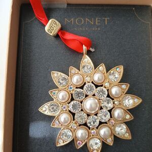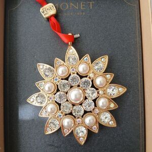 Monet Jewel & Pearl Snowflake Christmas Ornament 2019 Gold Silver New In Box