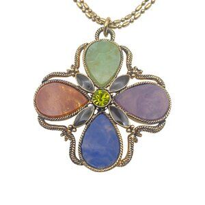 Monet Maltese Cross Pendant Necklace Multicolor Stones Gold Tone Chain 16+2"