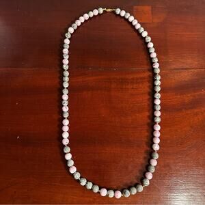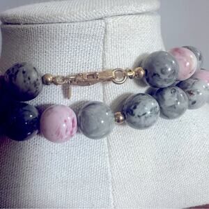 Monet Marble Beaded Necklace Pink Gray Grey Long Retro Vintage Preppy Casual