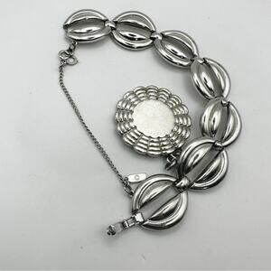 Monet Medallion Bracelet Silver tone Vintage Retro Chunky Maximalism Statement