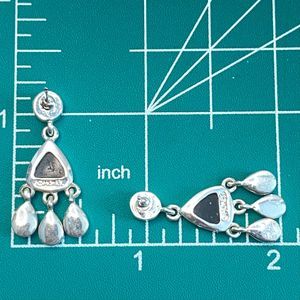 Monet Mini Chandelier Earrings Onyx Stones On Silver Tone Setting