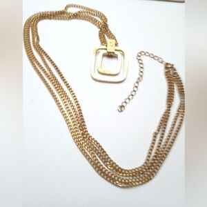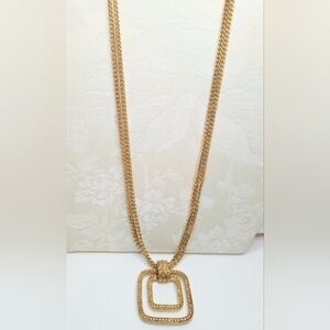 1970s signed Monet Chunky Double Square Pendant Gold Tone Necklace Double Chain