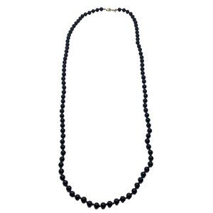 This Monet necklace is a vintage piece, featuring black beads and a comfortable 28-inch length. Versatile and stylish, it adds a touch of elegance to any outfit.