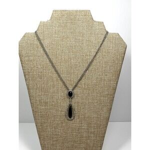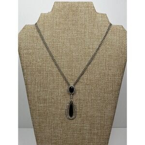 Monet Necklace Silver Tone Black Teardrop Pendant Rhinestones 16”+1.5”