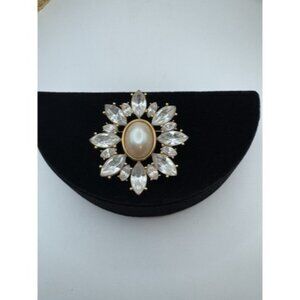 Monet Pin Brooch Star Flower Silver Tone Plastic Faux Pearl Rhinestones 2”