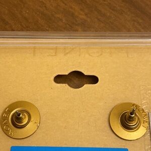 Monet Pink Champagne Gold Bezel Setting Oval Shape Logo Earrings.
