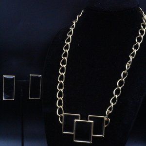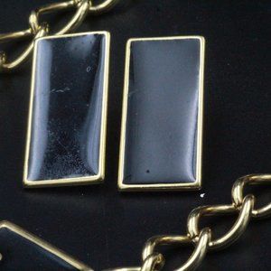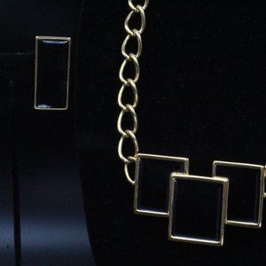 Monet Signed Designer Black Enamel Modernist Rectangular Necklace Set