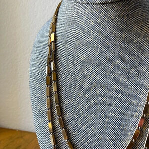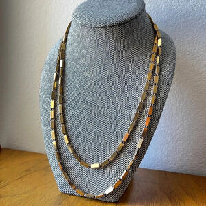 As a vintage piece, the necklace may exhibit minor signs of wear consistent with its age, such as slight scratches or patina on the metal accents. These characteristics add to the necklace's authenticity and charm.