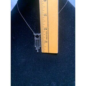 Monet Silver Necklace with Circular Pendant & Dangling Chains Crystals 16"