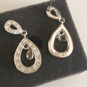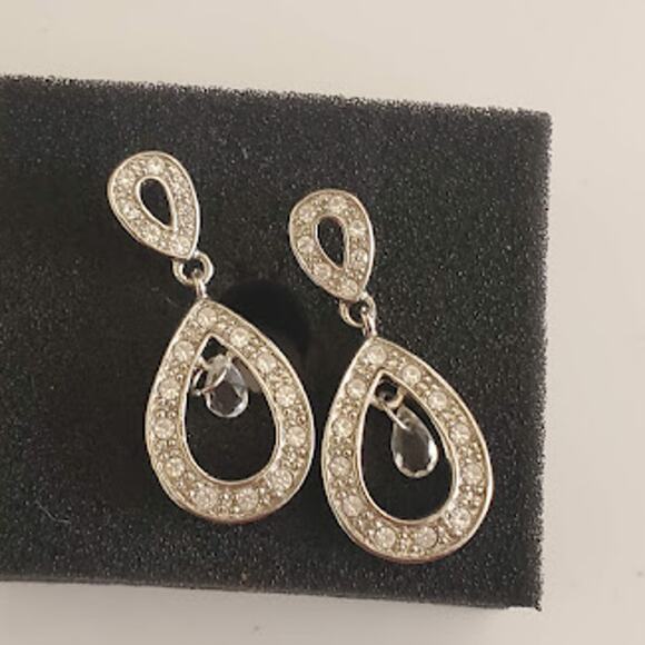 Monet Silver Tone Pave Crystal Dangle Earrings Tear Drop