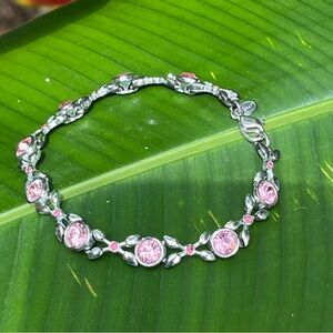 Monet Silver Tone Pink Crystal Bracelet Signed 7.5" Long