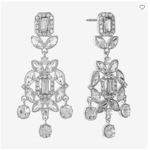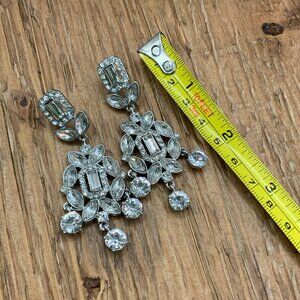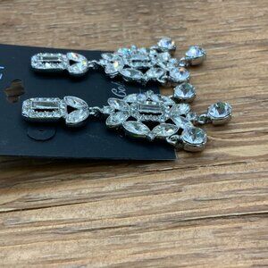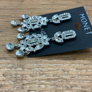 Monet Silver Tone Rhinestone Chandelier Earrings