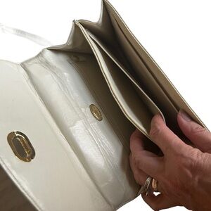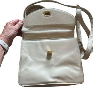 Keywords: leather bag, ivory bag, cream bag, crossbody bag, shoulder bag, convertible bag, vintage bag, minimalist bag, flap bag, structured bag, turn lock closure, adjustable strap, retro bag, classic bag
