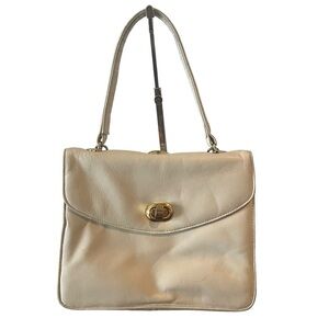 Monet Vintage All Leather Two-Way Handbag in Cream