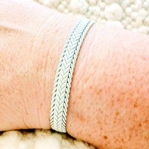 Monet Vintage Braided Enamel Bracelet 7" White & Gold Chevron Design
