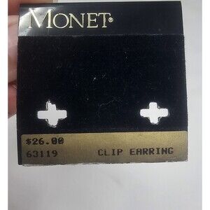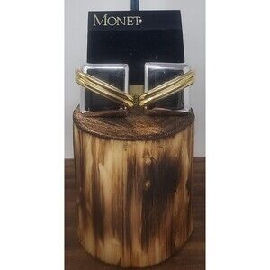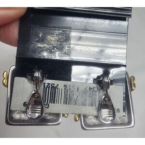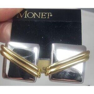 Monet Vintage Clip On Earrings Gold Silver Tone Chunky Signed Square 1" NEW