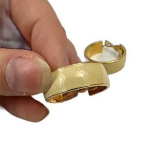 Monet Vintage Cream & Gold Small Wide Hoop Earrings OS