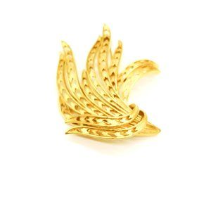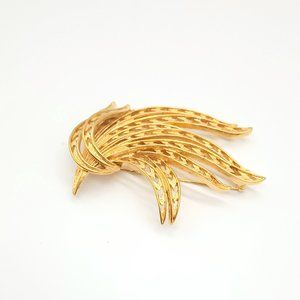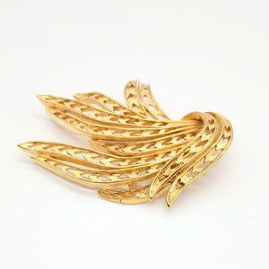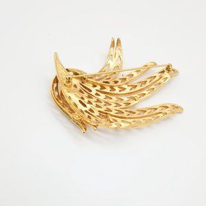 Monet Vintage Gold Feather Brooch Pendant Large Textured Open Work Pin