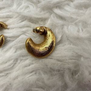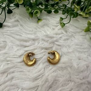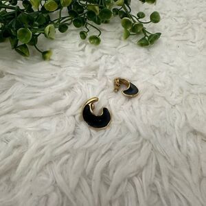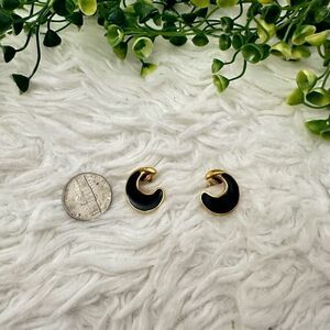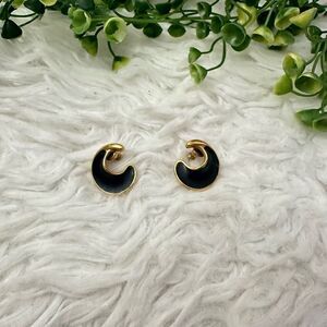Monet Vintage Gold Tone Black Enamel Pierced Crescent Earrings