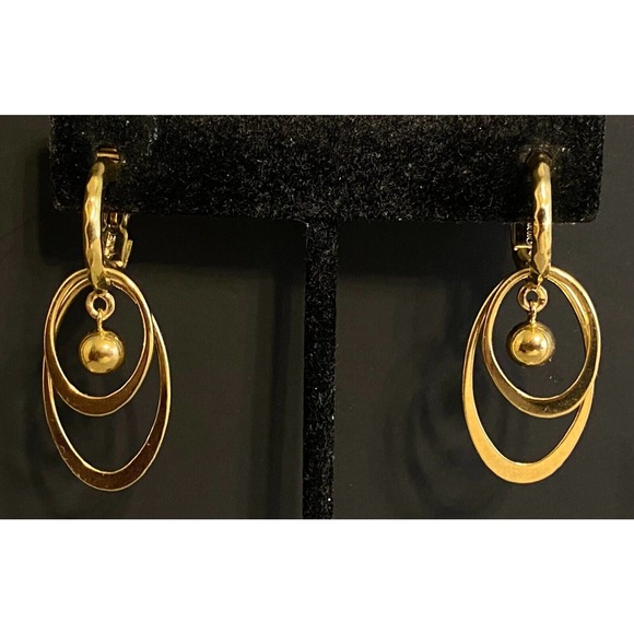 Monet Vintage Gold Tone Ring Bead Dangle Clip On Earrings