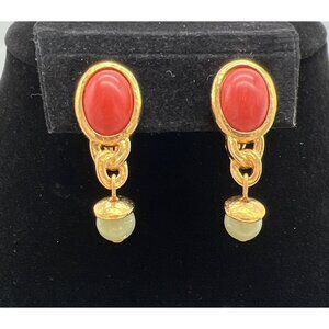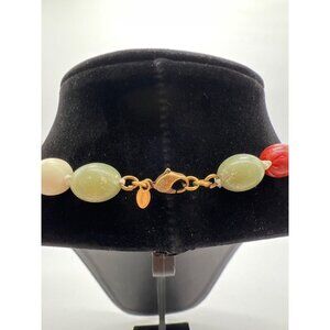 Monet Vintage Gold-Tone Clip-On Earrings & 33" Beaded Necklace Set Red Green Whi